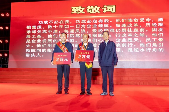 慶祝大會(huì)對(duì)在企業(yè)改革和經(jīng)濟(jì)發(fā)展過(guò)程中涌現(xiàn)出來(lái)的企業(yè)功臣、企業(yè)勞模進(jìn)行了隆重表彰。